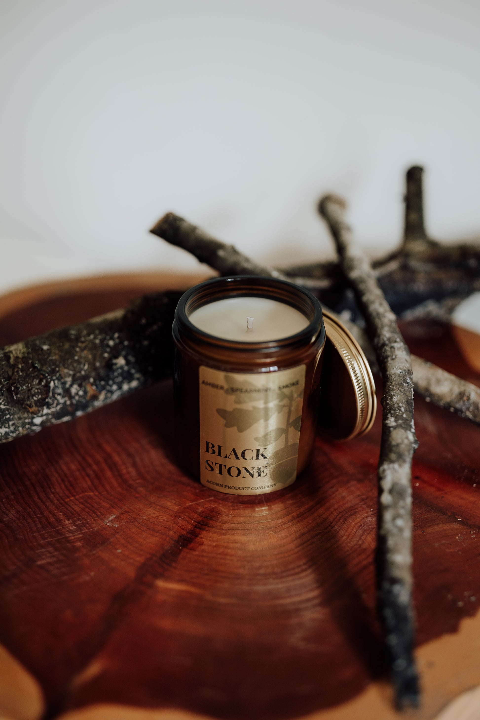 Blackstone is bold and unforgettable, with notes of amber, spearmint, and smoke. This 7oz soy candle set s the mood with a rich, confident scent that lingers.